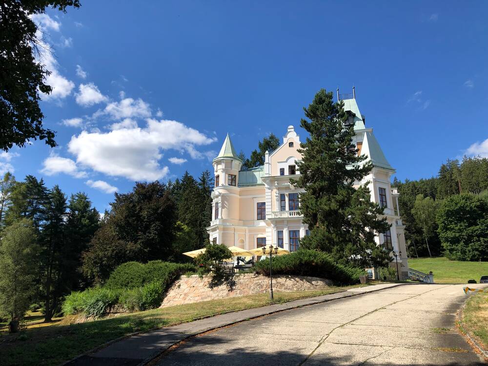 • Villa Golf je součástí hotelového komplexu Château Cihelny Art Royal Spa Hotel, která nabízí naprosté soukromí a zámecké služby, wellness zdarma