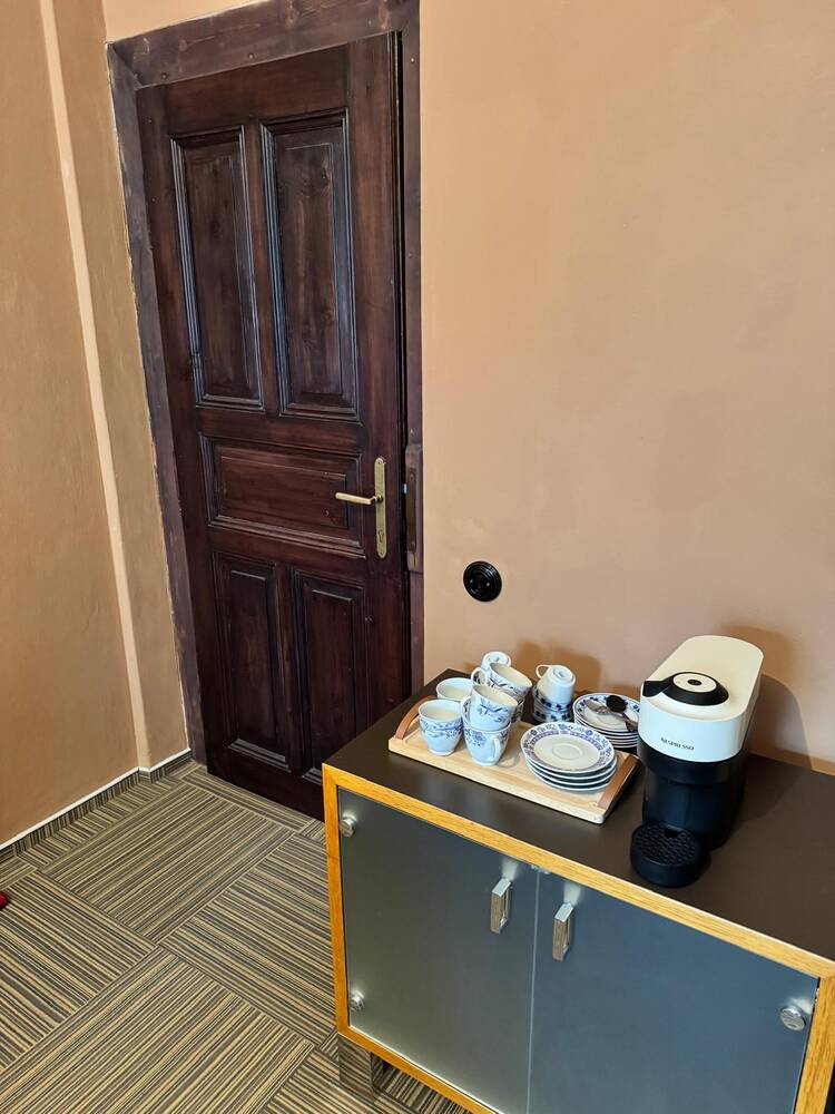 K pronájmu je možné využít kávovar Nespresso Virtuo za cenu 25 Kč/kapsli (čaj, voda v karafě bez limitu). Dohodnout lze i realizaci občerstvení formou bufetu, na vyžádání zašleme nabídku na míru a fotky již realizovaných akcí.