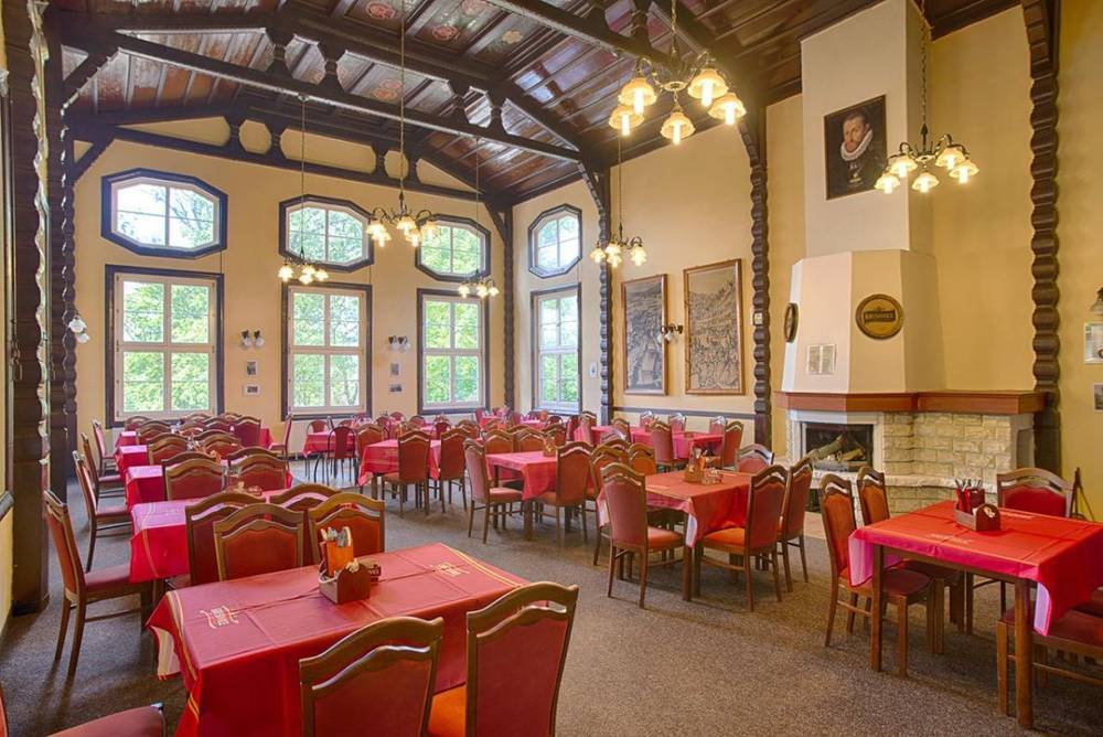V této stylové restauraci můžete ochutnat speciality české i mezinárodní kuchyně jak na lesní terase, v hlavním sálu s krbem či v zimní zahradě.