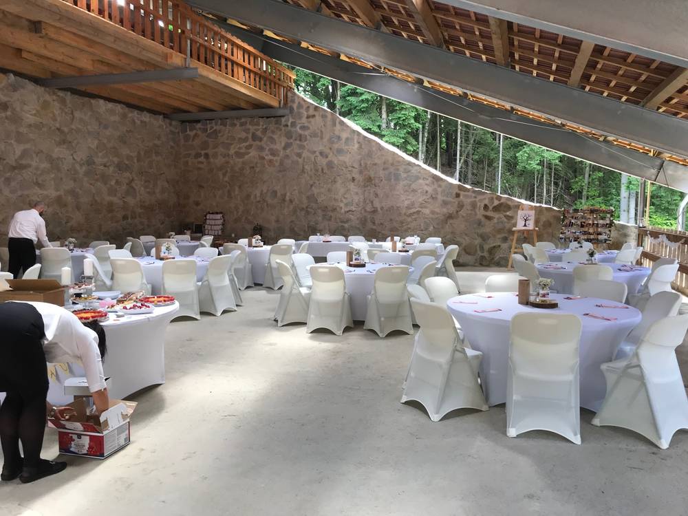 Během svatby je celý areál k dispozici (Velký venkovní gril, herna, společenská místnost s krbem, prostor u rybníčku s pergolou)